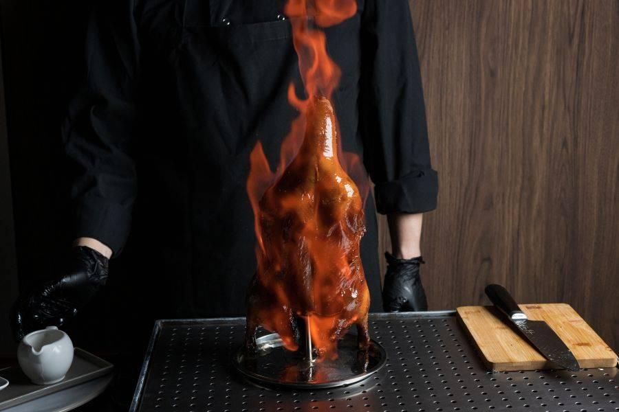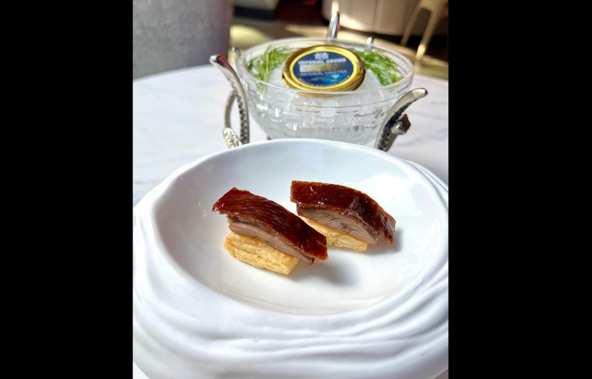 Our Signature Roasted Peking Duck is delivered daily from the Silver Hill farms. Weighing exactly 2.6kg, each duck is being chosen due to its ratio of meat and fat to create an outstanding culinary experience, that our chefs have mastered for our guests. The duck is served with freshly made black truffle pancakes, sliced cucumber, and spring onion along with a special sauce created in house.